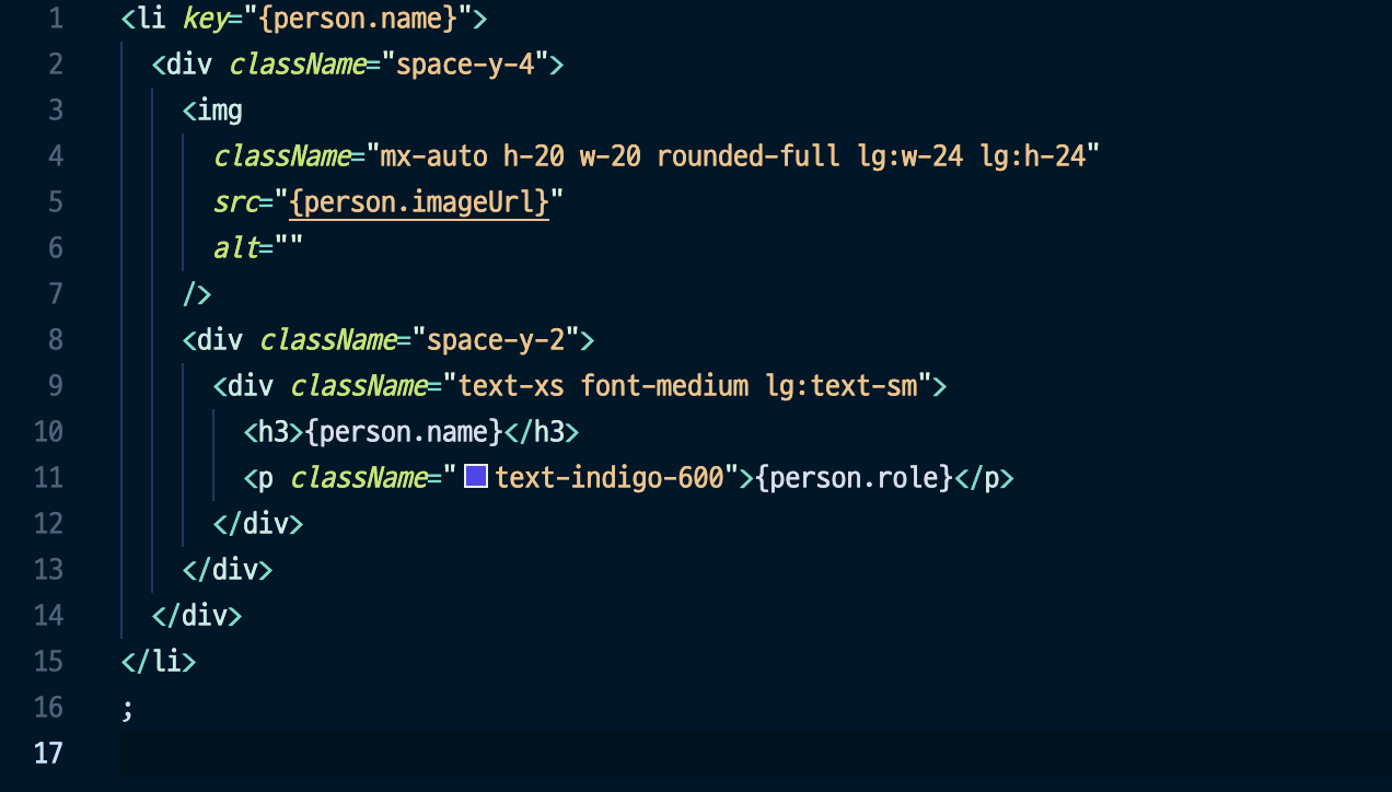 tailwind class 명을 보시면, 각 속성에 대해 직관적으로 표현이 되어있어서 클래스명을 보시면 어떤 역할을 하는지 파악 가능합니다.