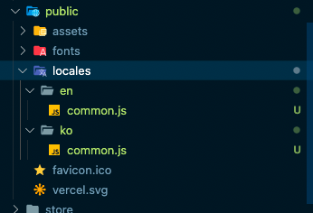 next.js 에서 i18n을 지원하고 있기 때문에, public/locales 라는 지정된 폴더 위치에 생성하면 됨.